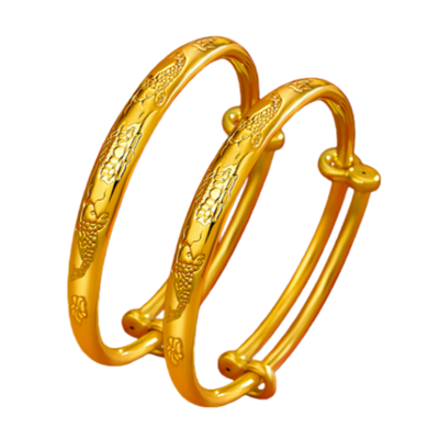 (第65期)宝宝足金锦鲤莲花金手镯 一对 约6.2g
